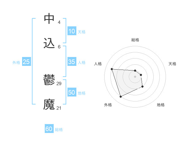 中込 鬱魔さんを姓名の画数から五運を鑑定