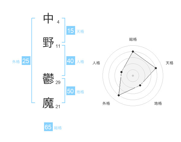 中野 鬱魔さんの総格は65画の4点!