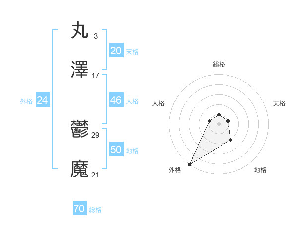 丸澤 鬱魔さんを姓名の画数から五運を鑑定