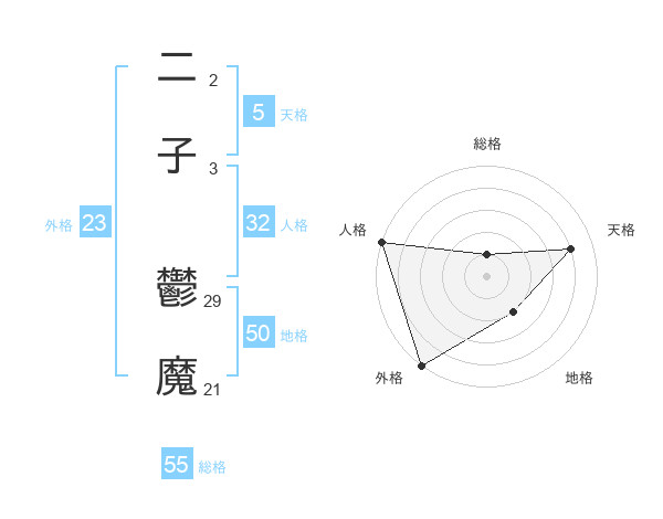 二子 鬱魔さんの外格は23画の5点!