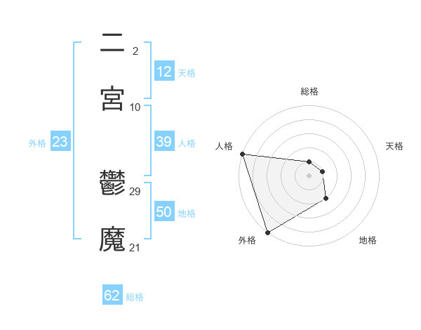 二宮 鬱魔さんの地格は50画の2点!