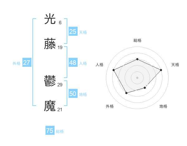光藤 鬱魔さんを姓名の画数から五運を鑑定
