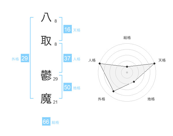 八取 鬱魔さんの外格は29画の4点!