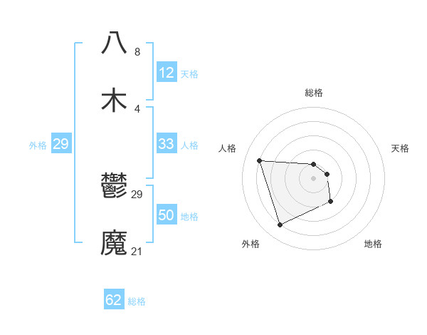 八木 鬱魔さんの地格は50画の2点!