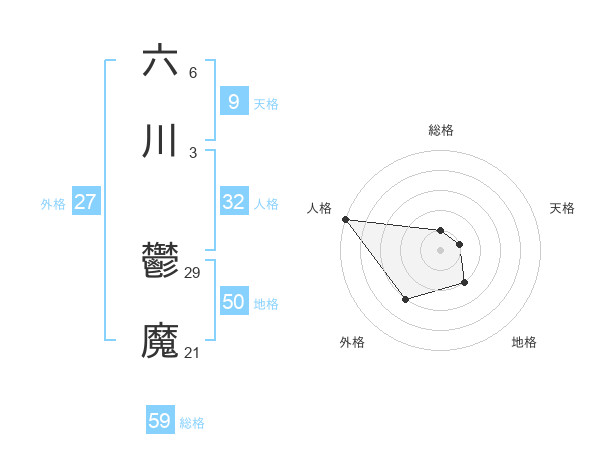 六川 鬱魔さんを姓名の画数から五運を鑑定