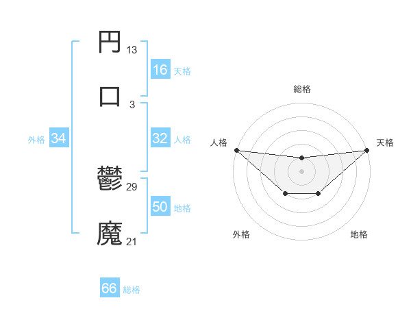 円口 鬱魔さんの地格は50画の2点!