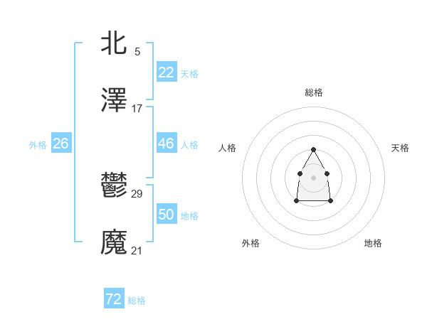 北澤 鬱魔さんを姓名の画数から五運を鑑定