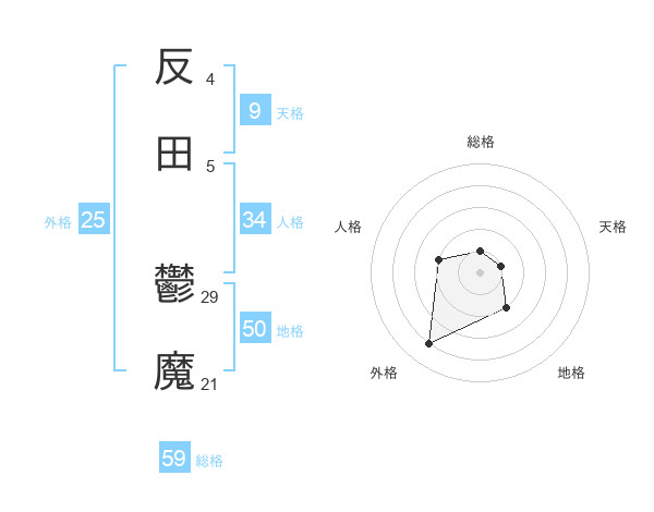 反田 鬱魔さんの総格は59画の1点!