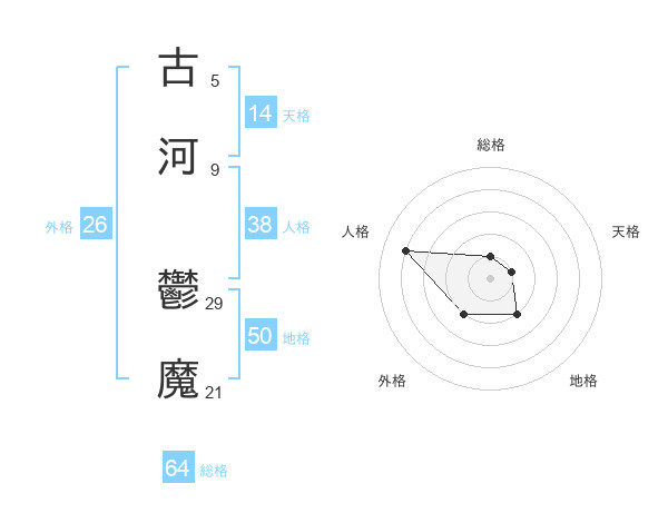 古河 鬱魔さんを姓名の画数から五運を鑑定