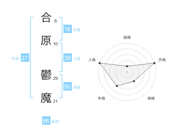 合原 鬱魔さんを姓名の画数から五運を鑑定