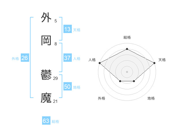 外岡 鬱魔さんを姓名の画数から五運を鑑定