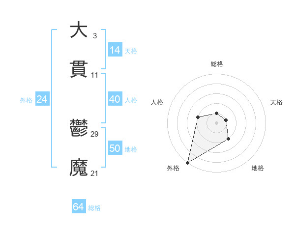 大貫 鬱魔さんを姓名の画数から五運を鑑定