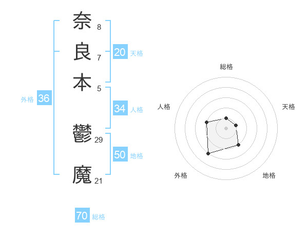 奈良本 鬱魔さんの総格は70画の1点!
