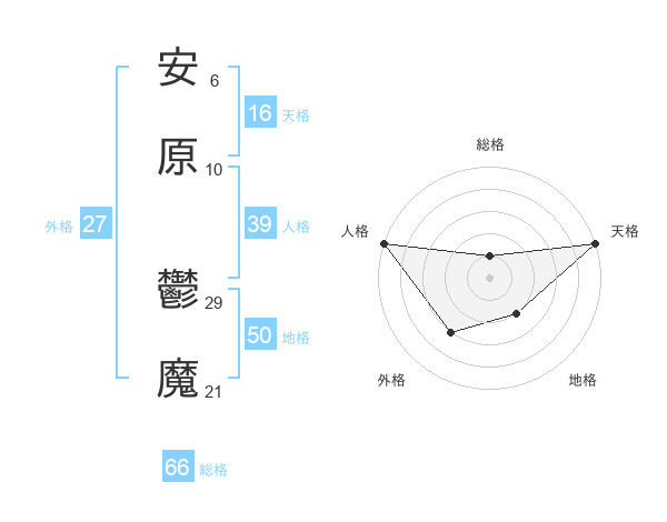 安原 鬱魔さんを姓名の画数から五運を鑑定