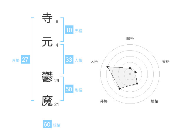 寺元 鬱魔さんの総格は60画の1点!
