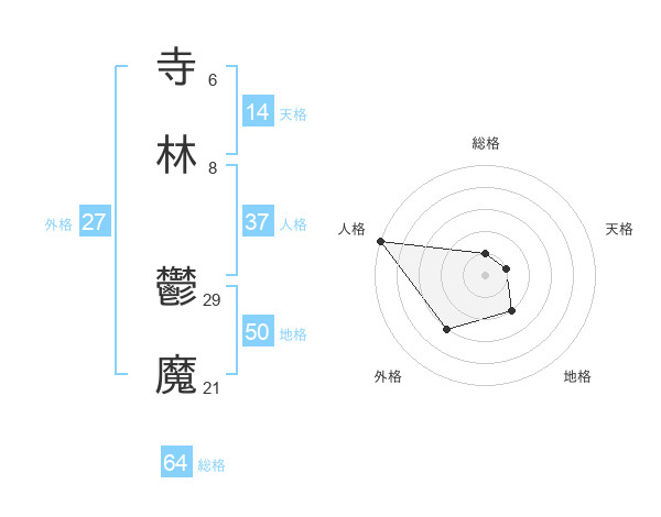 寺林 鬱魔さんの総格は64画の1点!