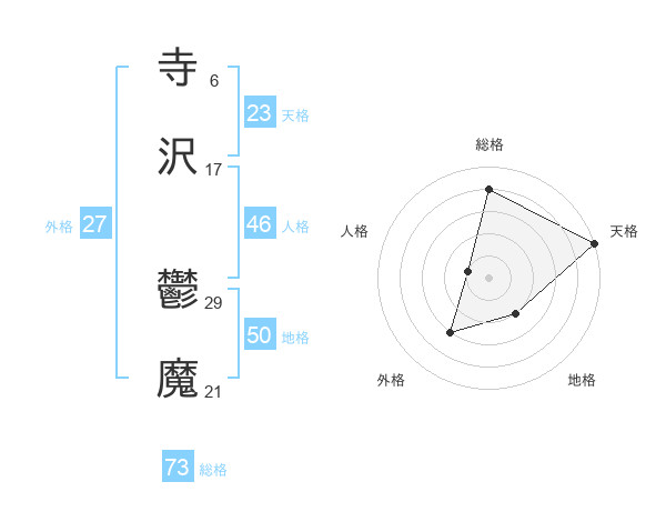 寺沢 鬱魔さんを姓名の画数から五運を鑑定