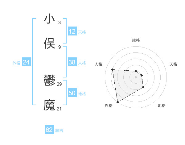 小俣 鬱魔さんを姓名の画数から五運を鑑定