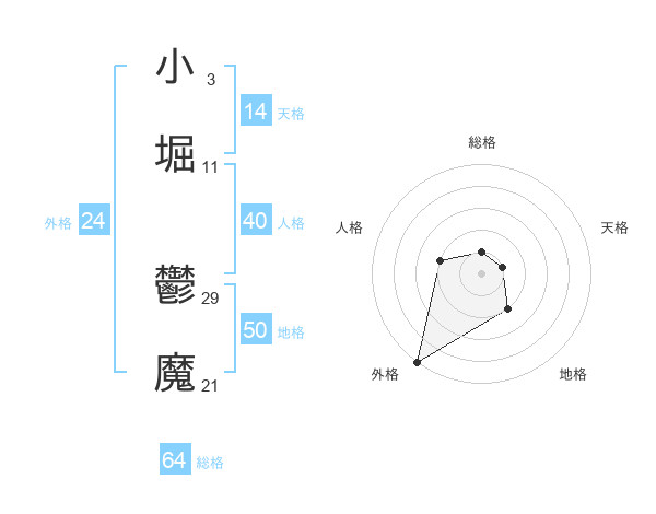 小堀 鬱魔さんを姓名の画数から五運を鑑定