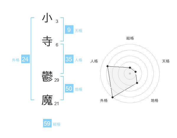 小寺 鬱魔さんを姓名の画数から五運を鑑定
