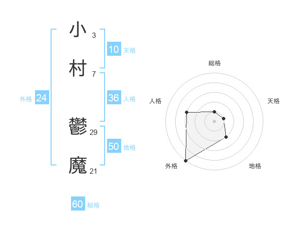 小村 鬱魔さんの外格は24画の5点!