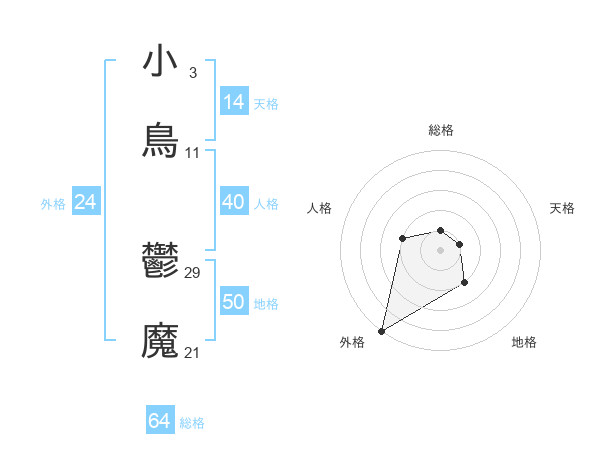 小鳥 鬱魔さんを姓名の画数から五運を鑑定