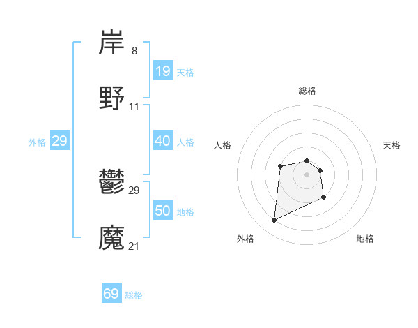 岸野 鬱魔さんを姓名の画数から五運を鑑定