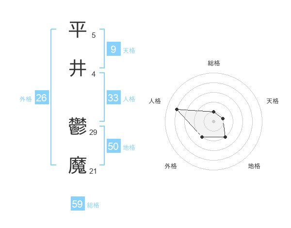 平井 鬱魔さんの外格は26画の2点!