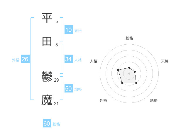 平田 鬱魔さんを姓名の画数から五運を鑑定