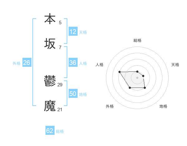 本坂 鬱魔さんの天格は12画の1点!