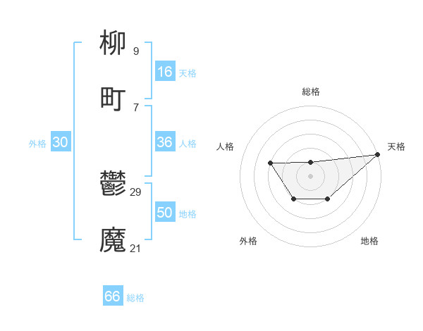 柳町 鬱魔さんを姓名の画数から五運を鑑定