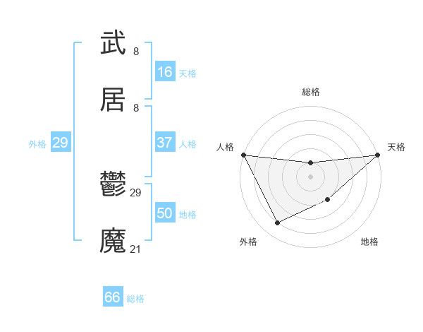 武居 鬱魔さんの総格は66画の1点!