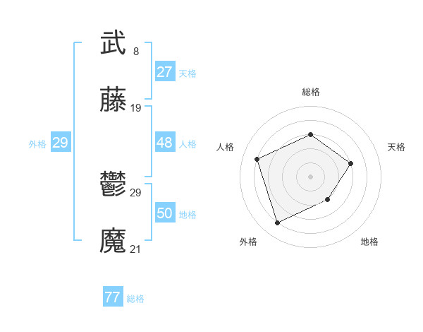 武藤 鬱魔さんを姓名の画数から五運を鑑定
