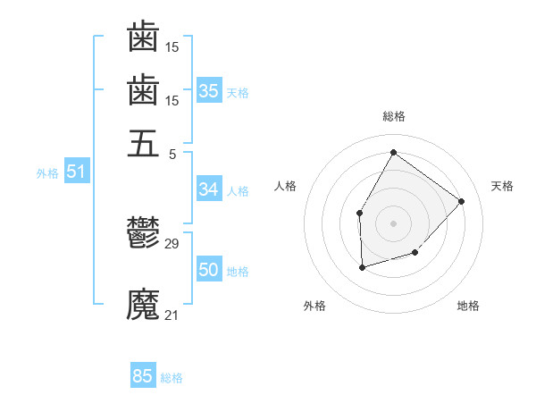 歯歯五 鬱魔さんを姓名の画数から五運を鑑定