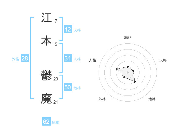江本 鬱魔さんを姓名の画数から五運を鑑定
