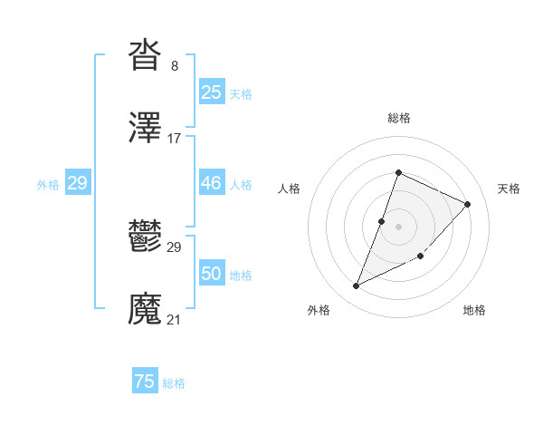 沓澤 鬱魔さんの総格は75画の3点!