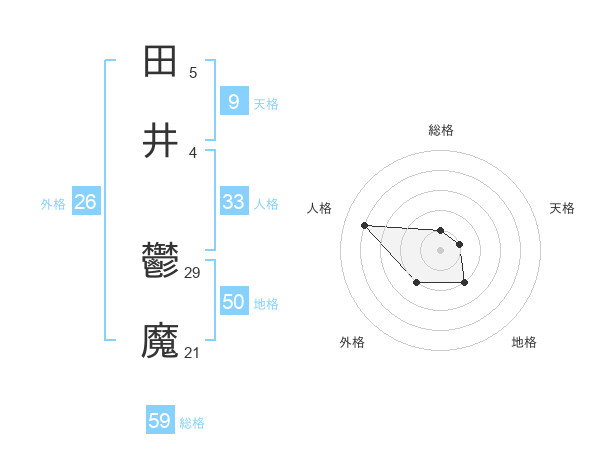田井 鬱魔さんを姓名の画数から五運を鑑定