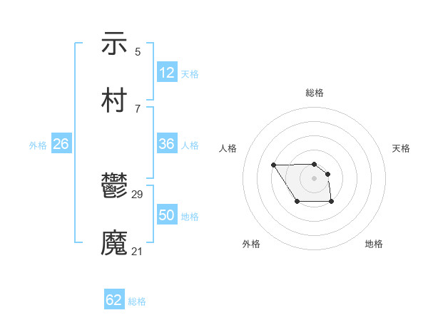示村 鬱魔さんを姓名の画数から五運を鑑定