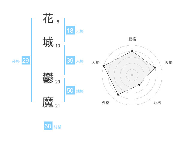 花城 鬱魔さんの総格は68画の4点!