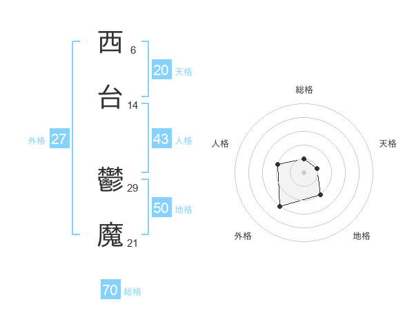 西台 鬱魔さんを姓名の画数から五運を鑑定