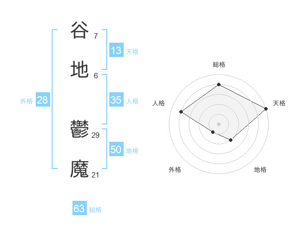 谷地 鬱魔さんの天格は13画の5点!