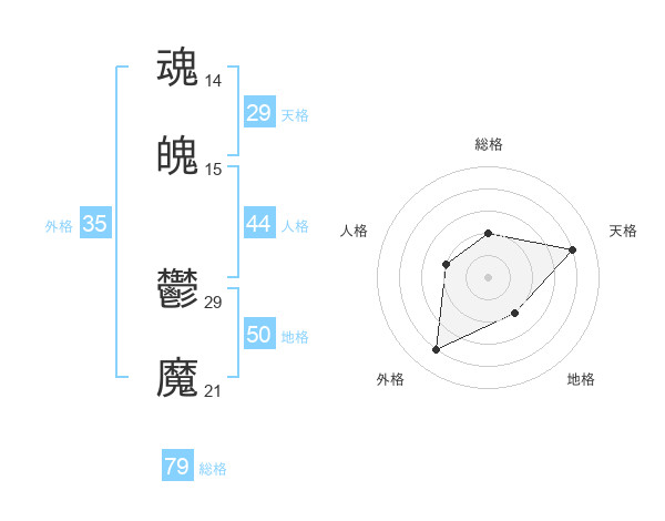魂魄 鬱魔さんの外格は35画の4点!