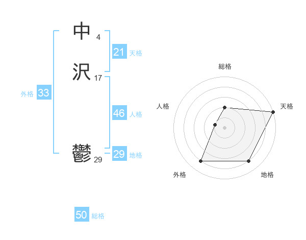 中沢 鬱さんを姓名の画数から五運を鑑定