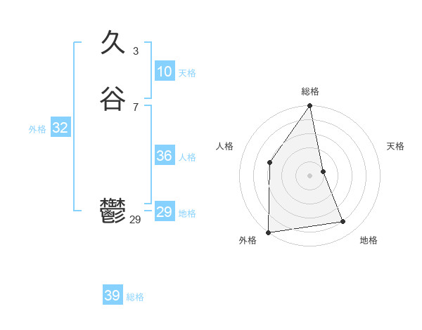 久谷 鬱さんの総格は39画の5点!