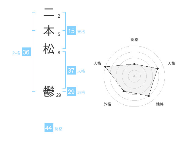 二本松 鬱さんの総格は44画の2点!