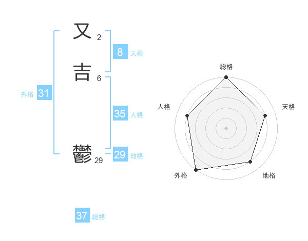 又吉 鬱さんの外格は31画の5点!