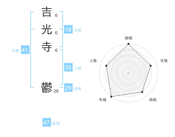 吉光寺 鬱さんの総格は47画の5点!