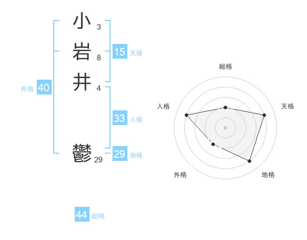 小岩井 鬱さんの総格は44画の2点!