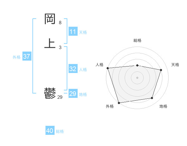 岡上 鬱さんを姓名の画数から五運を鑑定