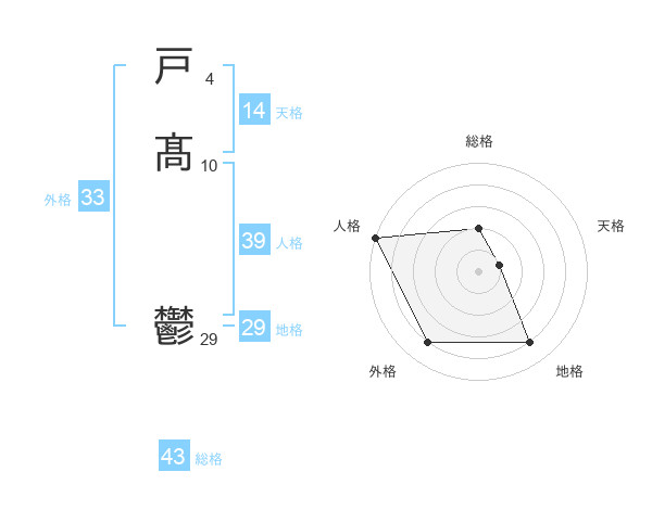 戸髙 鬱さんを姓名の画数から五運を鑑定